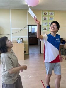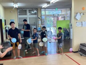 実際にやってみるとうちわ等で仰ぐので、力の加減や風船の飛ぶ位置を考えながら行い、難易度が高い活動でした!